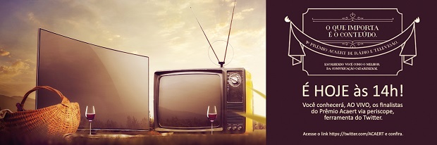 Os finalistas da 9ª edição do Prêmio ACAERT de Rádio e Televisão estão sendo anunciados agora, via periscope, ferramenta do twitter que possibilita transmissão ao vivo.