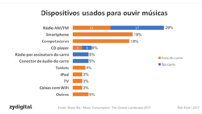 Pesquisa da Music Business Association, investigou quais seriam os dispositivos mais utilizados para ouvir músicas no mercado americano