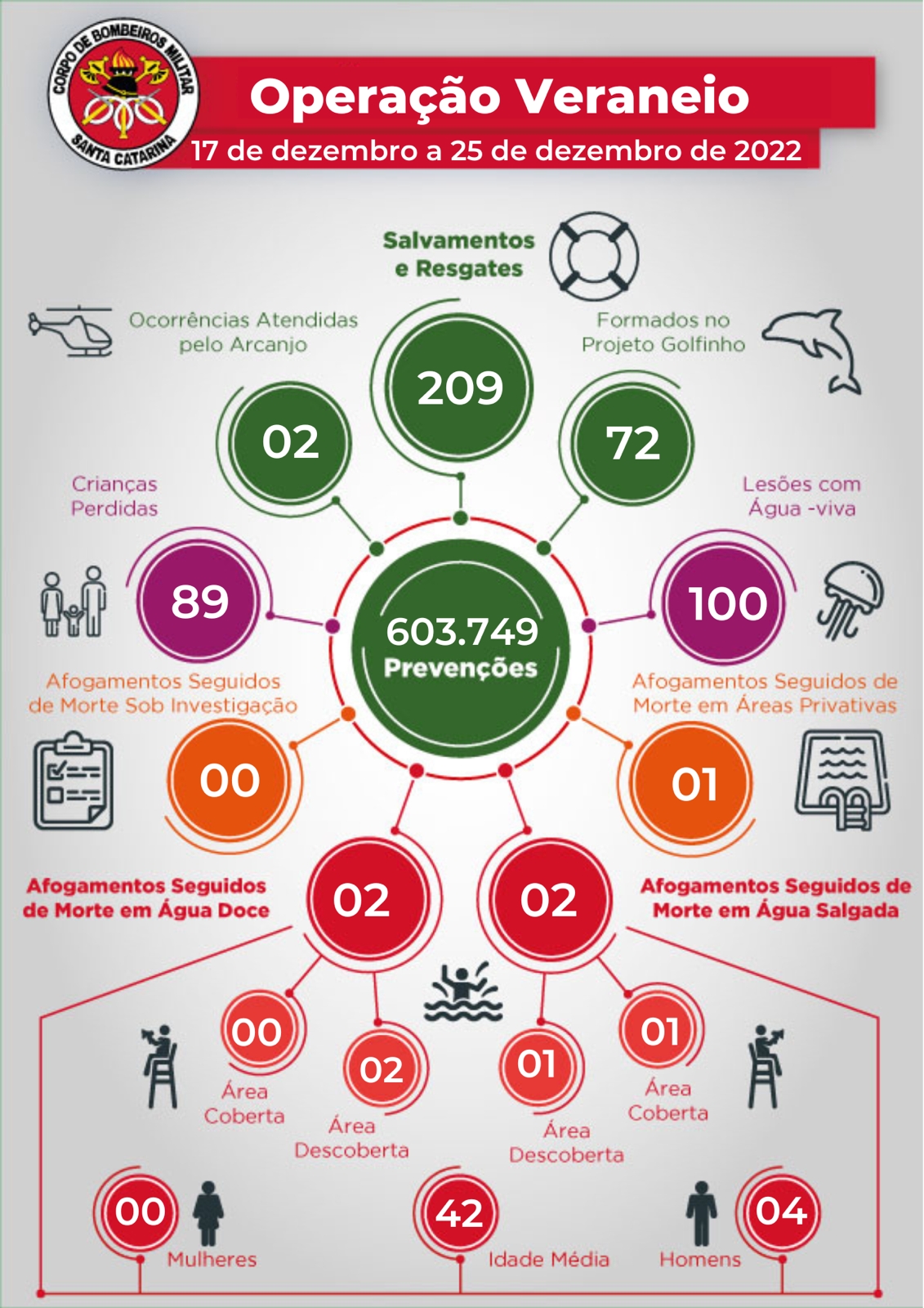 30/12/2022Confira o primeiro boletim da Operação Veraneio 2022/2023 do Corpo de Bombeiros Militar de SC: