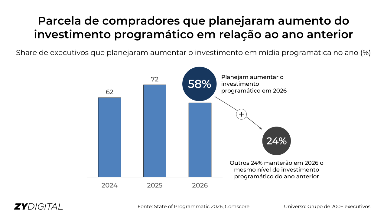 De modo geral, 58% dos compradores de mídia planejam ampliar os investimentos em programática em 2026.