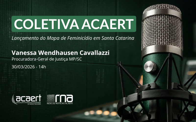 A Rede de Notícias ACAERT – RNA promove às 14 horas do dia 30 de março mais uma edição do ‘COLETIVA ACAERT’, com a procuradora-geral de Justiça do MPSC, Vanessa Wendhausen Cavallazzi. Será lançado o ‘Mapa de Feminicídio em Santa Catarina’, levantamento produzido pelo Ministério Público de Santa Catarina. A Chefe do MPSC divulgará números inéditos sobre a situação do estado.