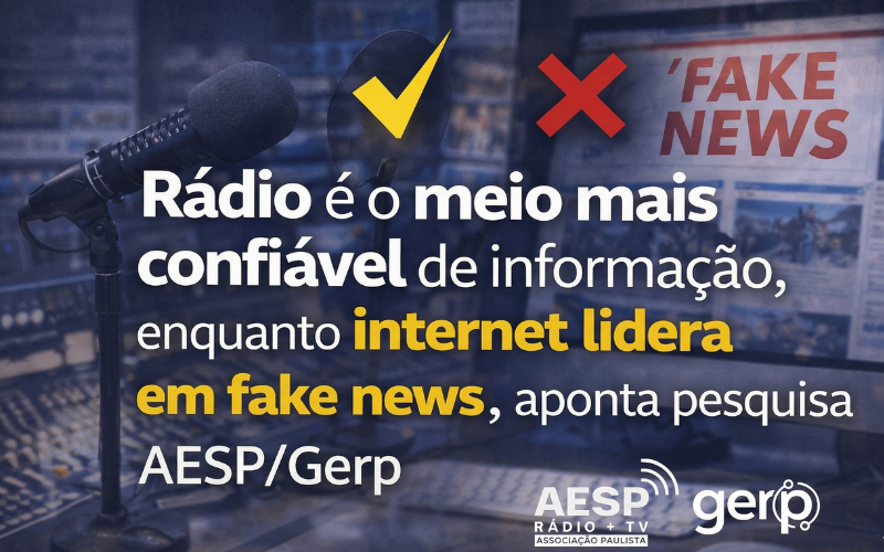 Uma pesquisa realizada pela Associação das Emissoras de Rádio e Televisão do Estado de São Paulo (AESP), em parceria com o instituto GerpCati, com base em 1.000 entrevistas e nível de confiança de 95,5%, revela que o rádio é percebido como um dos meios de comunicação menos associados à disseminação de notícias falsas no Brasil. O levantamento também destaca hábitos de consumo do meio, indicando presença relevante no dia a dia da população, principalmente durante deslocamentos.