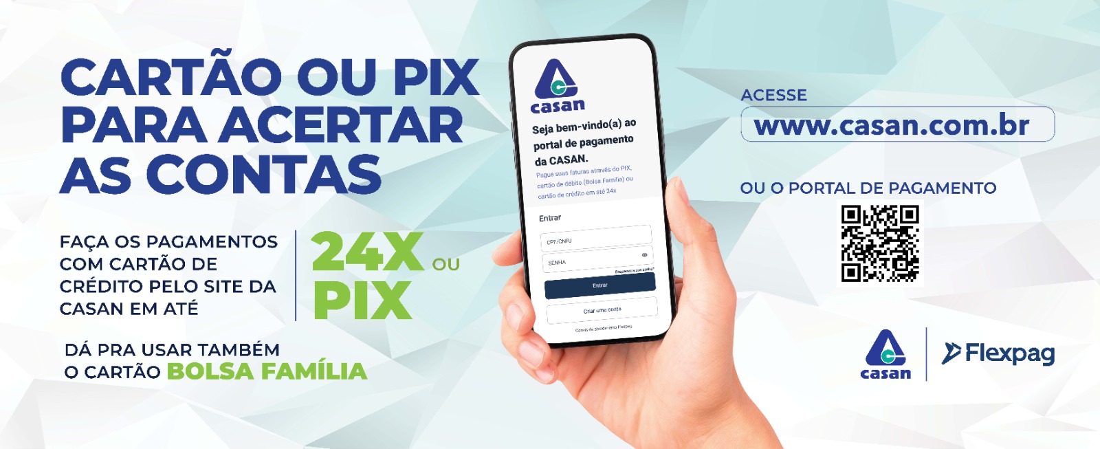 Casan oferece pagamento online, sendo possível quitar as faturas através do cartão de crédito, Pix e com o Bolsa Família