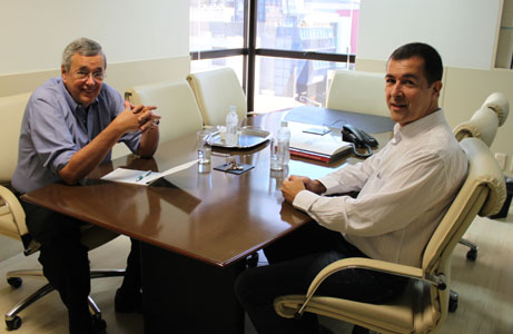 13/05/2014O diretor Geral da Associação das Emissoras de Rádio e Televisão do Estado do Rio de Janeiro (AERJ), Flávio Cavalcanti Jr visitou nesta terça-feira, 13, a sede da ACAERT, em Florianópolis. O objetivo foi conhecer de perto o funcionamento da Central ACAERT de Rádios e da Rede de Notícias ACAERT – RNA, que são os setores comercial e jornalismo da entidade, respectivamente. O dirigente carioca foi recebido pelo diretor Executivo da ACAERT, Everson Juguero.