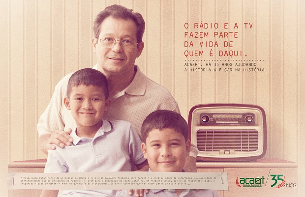30/09/2015A Associação Catarinense de Emissoras de Rádio e Televisão - ACAERT está lançando nesta quarta-feira, 30, a campanha institucional em comemoração aos 35 anos da entidade. Fundada na década de 1980, a ACAERT celebra a sua criação no dia 22 de novembro.