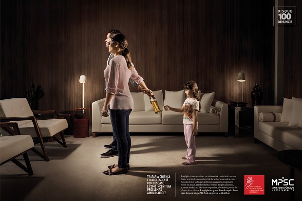 Criada pela agência D/Araújo, a campanha inclui filme, spot, outdoor, anúncios para jornal e revista, cartaz e folder. As peças mostram pais como se estivessem incentivando os filhos a realizar coisas ruins.