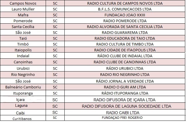 Veja abaixo a relação completa de emissoras que assinaram o Termo Aditivo no dia 07 de novembro: