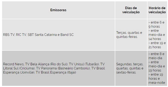 Entre as emissoras contempladas no projeto, estão 11 TVs abertas de Santa Catarina filiadas à ACAERT. As emissoras regionas: RBA TV (Rio do Sul) , TV Litoral Sul (Criciúma), TV Brasil Esperança (Joinville e Itajaí), TV Litoral Panorama (Balneário Camboriú) e TV Unisul (Tubarão), além das cinco principais redes estaduais: RBS TV, SBT SC, RIC/Record TV, Band SC e Record News. O presidente da ACAERT, Marcello Corrêa Petrelli, afirma que a iniciativa vai aproximar o cidadão dos seus representantes no parlamento. “Entendemos que o Brasil passa por um novo momento e, cada vez mais, o cidadão precisa ser bem informado e com transparência".