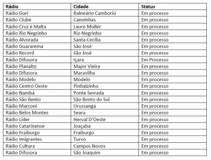 Outras 22** emissoras ainda estão em processo de migração, ou seja, realizando a compra de equipamentos, elaborando os projetos técnicos e solicitando as devidas autorizações da ANATEL (relação completa das emissoras abaixo).