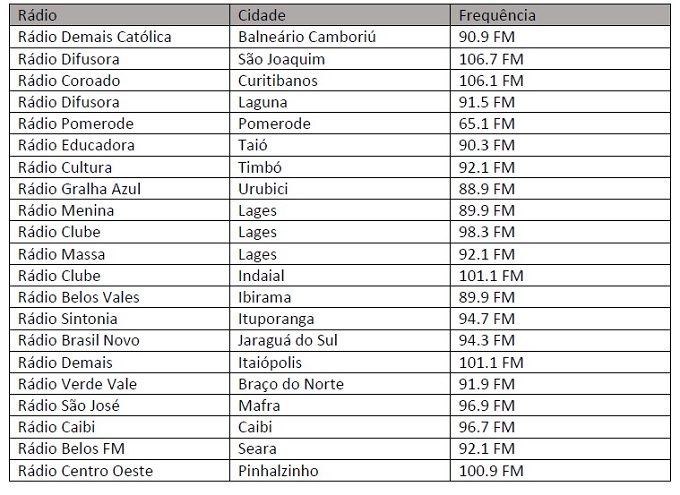 Veja na tabela abaixo a relação completa das emissoras que já migraram.