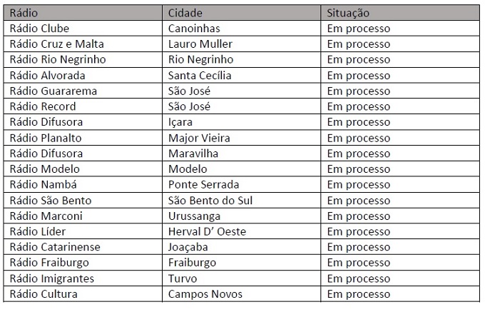 Outras 18 emissoras catarinenses ainda estão em processo de migração, ou seja, realizando a compra de equipamentos, elaborando os projetos técnicos e solicitando as devidas autorizações da ANATEL.