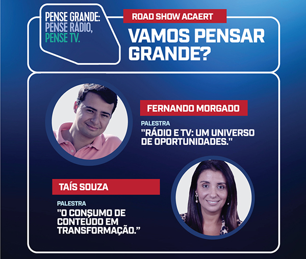 A ACAERT promove nesta semana mais duas etapas do Road Show VAMOS PENSAR GRANDE, evento que reunirá radiodifusores, anunciantes, publicitários, jornalistas, radialistas e profissionais do serviço público na área de comunicação. As inscrições são gratuitas e podem ser feitas no link: http://acaert.com.br/acaert-promove-nova-fase-do-pense-grande-pense-radio-pense-tv#.Xl0Jo6hKiUk