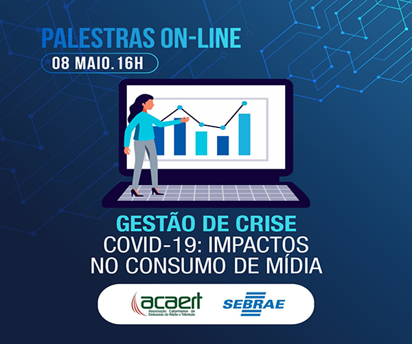 05/05/2020O Sebrae/SC promove nesta sexta-feira (08), às 16 horas, transmissão da palestra “Gestão de crise, o Covid-19 e os impactos no consumo de mídia”, com a diretora comercial da Kantar Ibope Media, Giovana Alcântara. Durante a pandemia, pesquisas recentes revelam que as pessoas buscam a informação nos veículos de comunicação mais confiáveis, como o rádio e a televisão, o que resultou no aumento da audiência das emissoras. A convite da ACAERT, Giovana Alcântara, destacará o crescimento do consumo de mídia neste período.