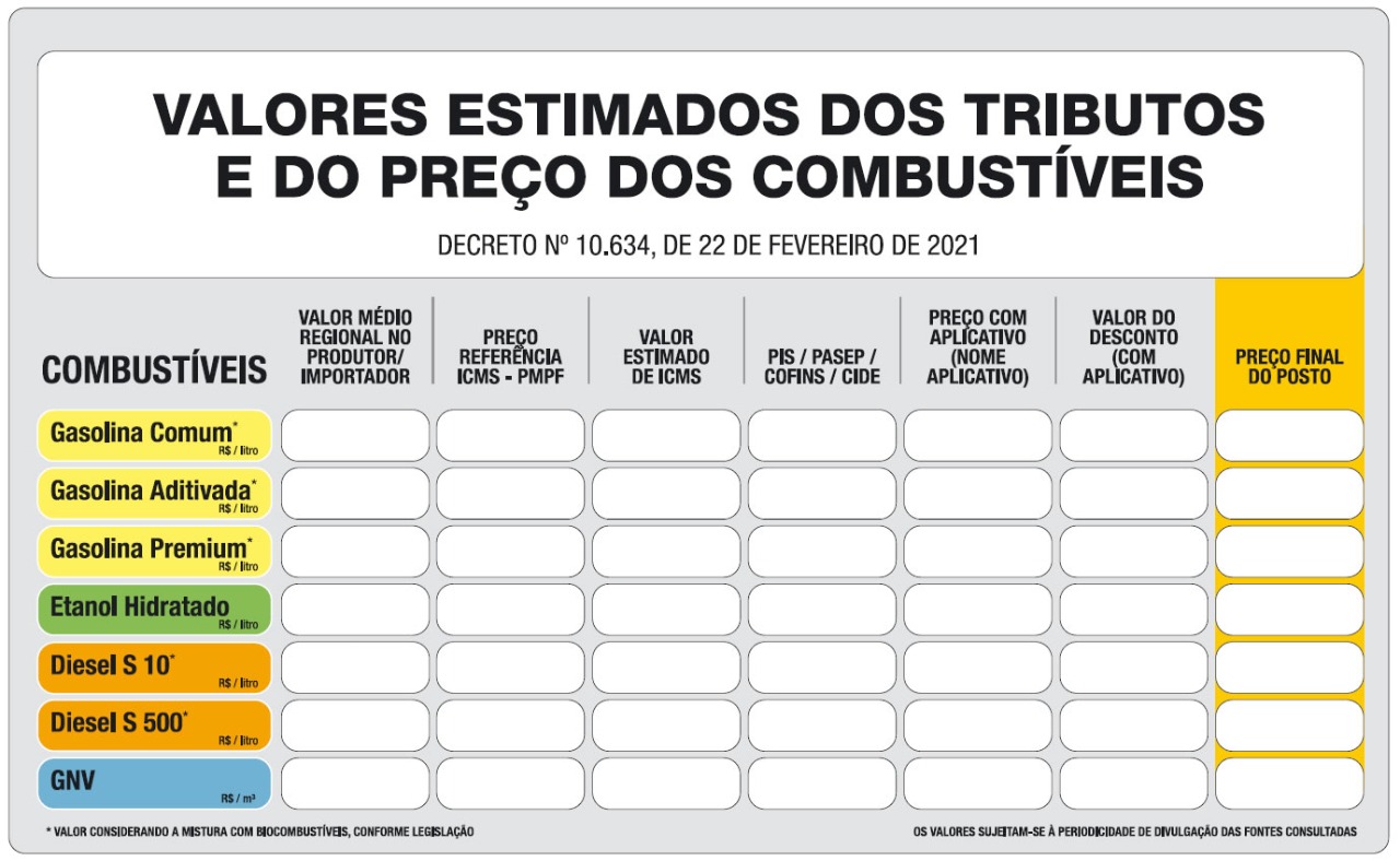 Postos de devem anunciar preços dos combustíveis praticados antes da redução do ICMS