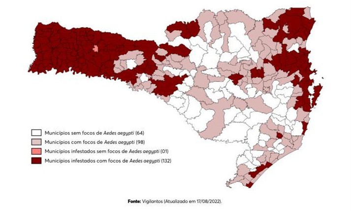 Santa Catarina está há seis semanas sem registrar mortes por dengue. Mas número de focos do Aedes aegypti e de novos casos da doença continuam crescendo no Estado
